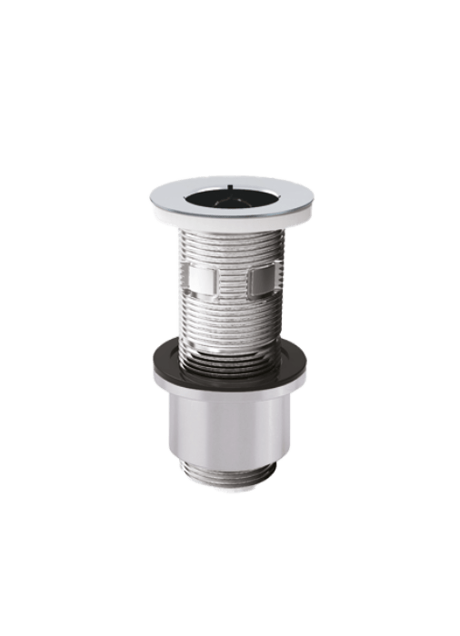 Free-flow waste for worktops with overflow option, ideal for washbasins without a plug. Its open design allows for continuous water drainage, combining functionality and aesthetics with a finish that blends seamlessly into modern bathroom environments.