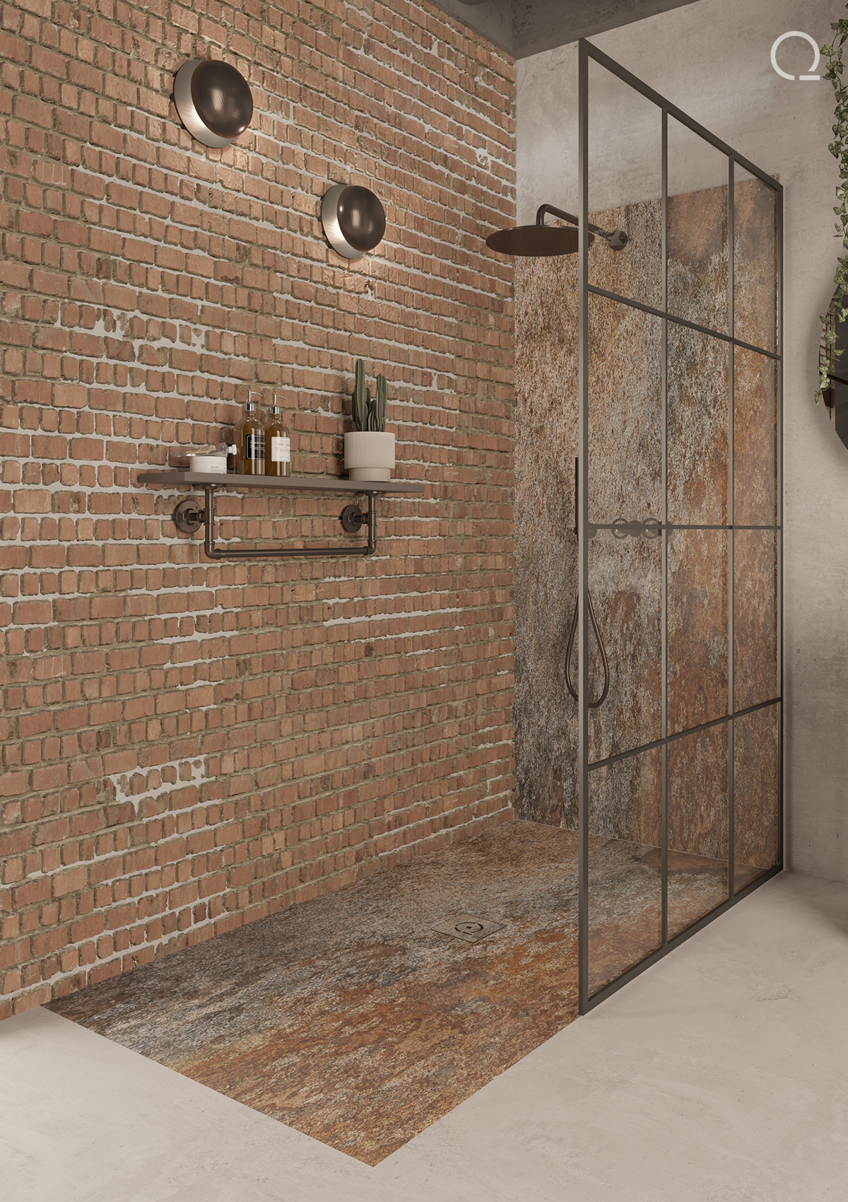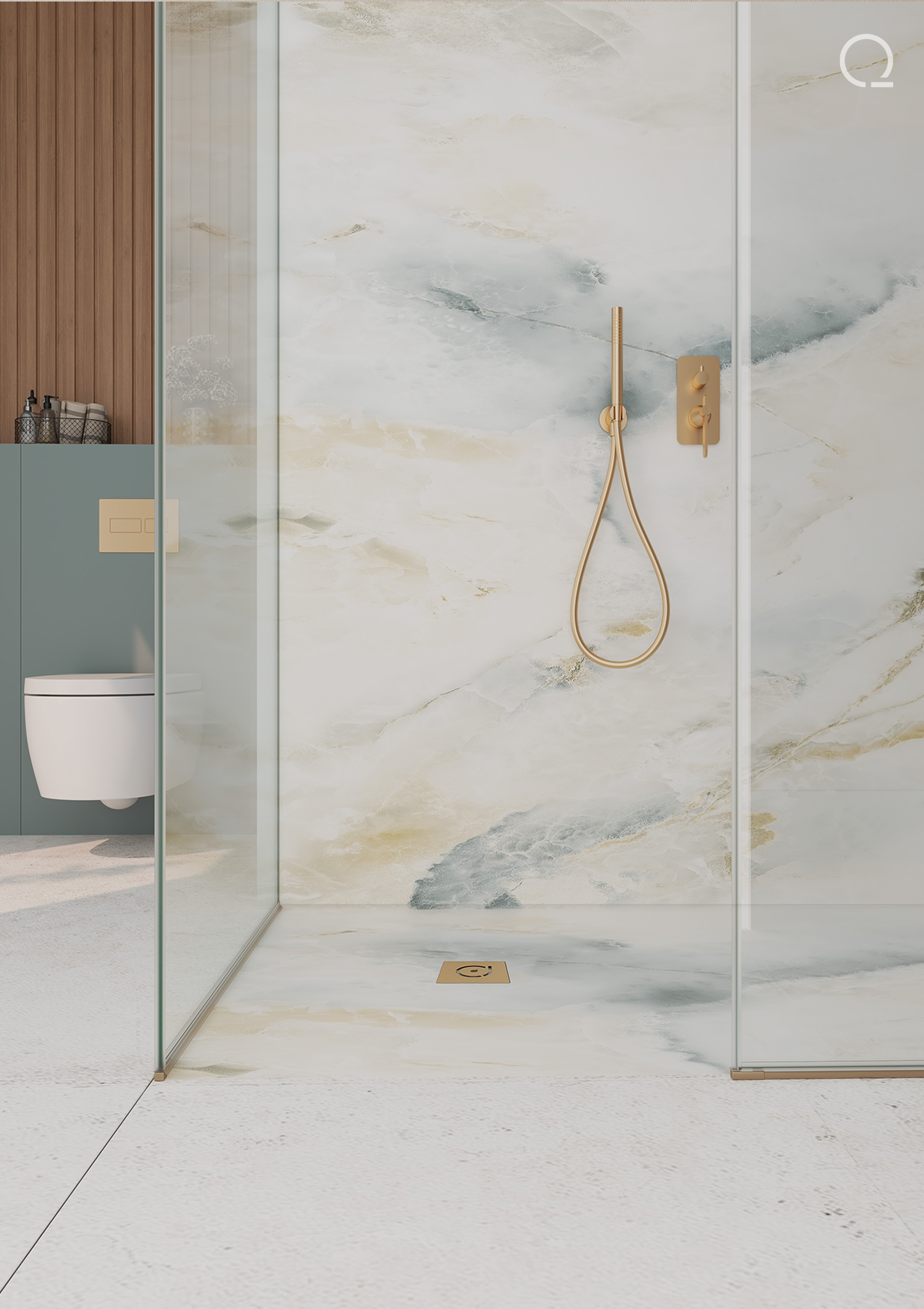 Creativity printed in every detail. The Relief Plus shower tray in its PRINT version takes customisation to another level thanks to the possibility of incorporating unique prints on the Pizarra (slate) and Liso (smooth) textures. From more classic marble-like designs to more industrial motifs, this option allows you to create visually striking and completely customised shower trays. With its printed grid, although it can be combined with PVD finish grids to match the taps and give a sophisticated touch, Relief Plus PRINT becomes a visually homogeneous piece with an avant-garde and artistic design, perfect for bathrooms that seek to surprise.
