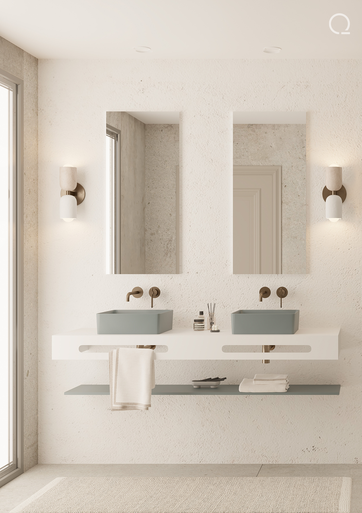 Le plan vasque Lounge dans les couleurs spéciales —Fossil, Gold et Terracotta— transforme sa forme douce et minimaliste en une pièce design à forte personnalité. Idéal pour les salles de bains classiques qui recherchent une touche de modernité, sa vasque lisse et les textures disponibles Liso (lisse) ou Pizarra (ardoise) soulignent davantage son esthétique sophistiquée. Il peut être installé au mur ou sur meuble.