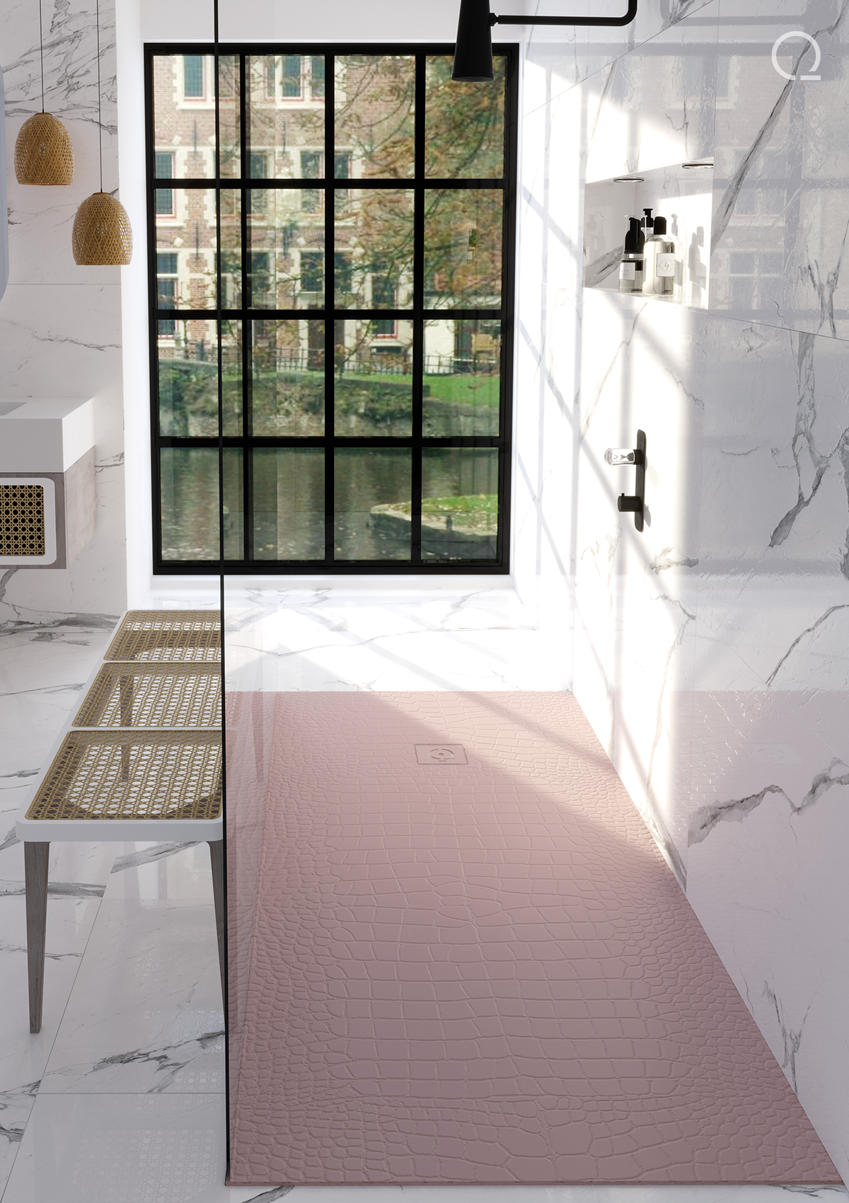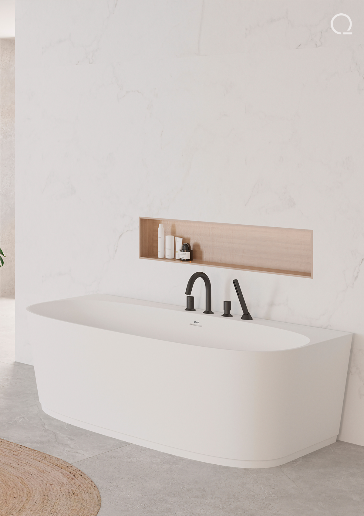 Q-tek es un material Solid Surface, especialmente adecuado por su ligereza para productos pesados tales como bañeras.