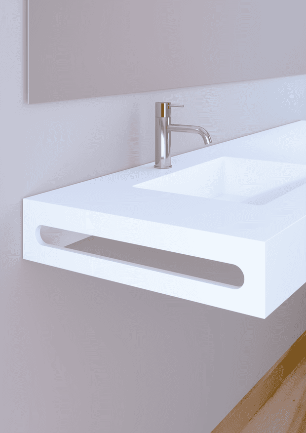 Portasciugamani per piani con vasca integrata, progettato per offrire praticità e ordine nella zona lavabo. Prodotto su misura, le sue dimensioni possono essere adattate alle esigenze e posizionato dove si desidera: frontale, laterale, centrato, asimmetrico. Elemento stilizzato che conferisce funzionalità al piano con vasca integrata.