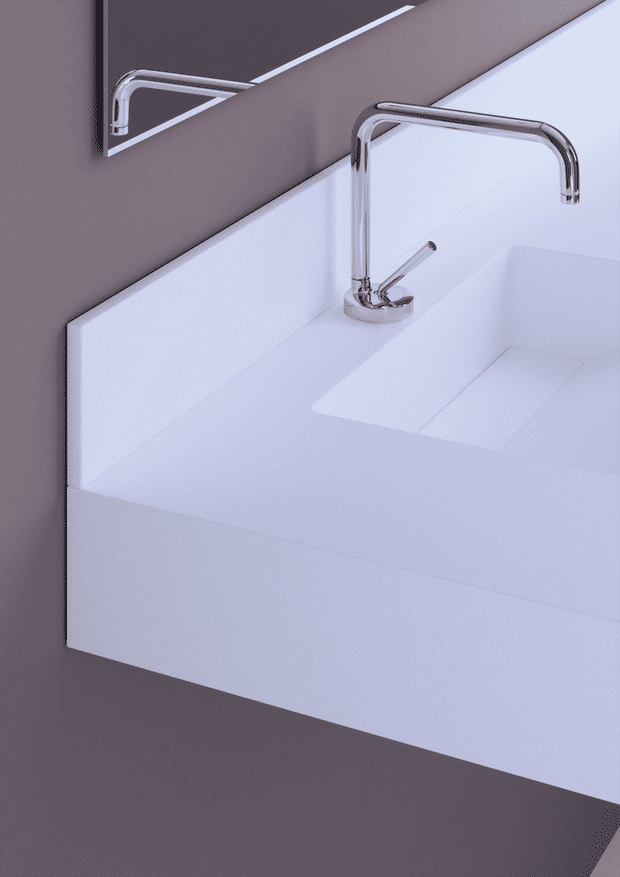 Copete para encimera, diseñado para rematar la parte posterior de la encimera y proteger la pared de salpicaduras. Aporta un acabado limpio y funcional, mejorando tanto la estética como la higiene del espacio de baño.
