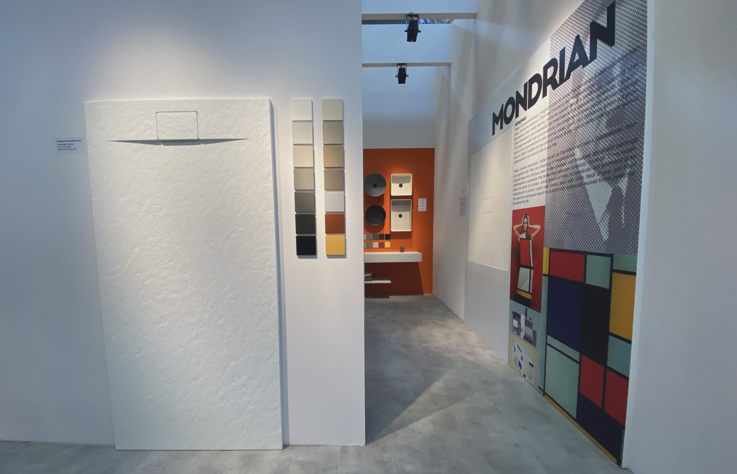 Ya hemos hablado en alguna ocasión del plato de ducha Mondrian, una novedad que verá la luz a comienzos del año próximo y que hemos presentado en este Cersaie 2021 concediéndole dos espacios dentro del stand. Con este producto, inspirado en los cuadros del pintor que le da nombre, demostramos que el arte también tiene cabida en el cuarto de baño.